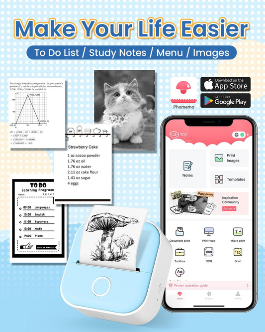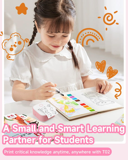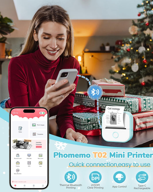 Phomemo Mini Printer,T02 Thermal Printer,Portable Photo Phone Printers for Students,Wireless Sticker Printer for iOS & Android,Small Bluetooth Printer for Home Office School Crafters Kids Friends
