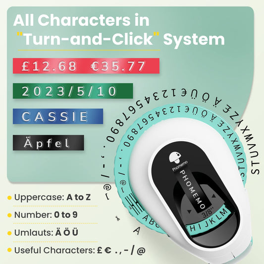 Phomemo M¨¢quina de Etiquetas en Relieve, 3D Port¨¢tiles Etiquetadoras, Etiquetadoras Adhesivas Verde - F¨¢cil de Usar para Oficina Hogar (Etiquetadoras Verde con 6 Cintas de Etiquetas)