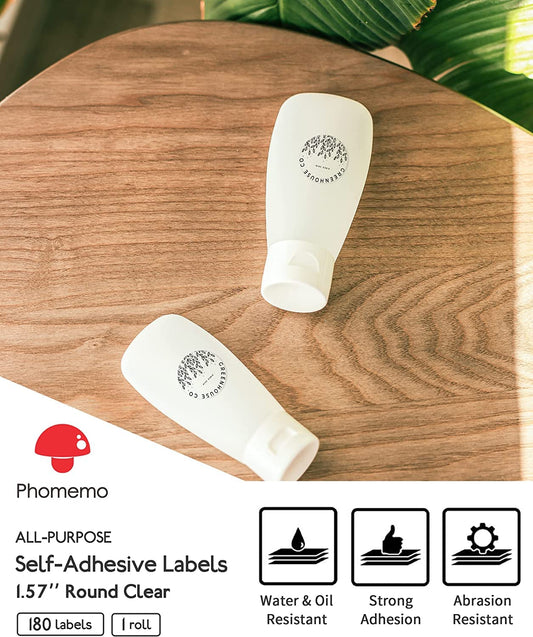 Phomemo Naklejka z logo, 5 cm, okr?g?y, przezroczysty, samoprzylepny, bezpo?redni papier do etykiet Phomemo M110, M120, M220, M220, u?ywany do drukowania logo, oznaczania artyku?¨®w gospodarstwa domowego