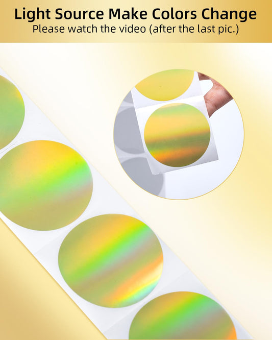 Phomemo Okr?g?e etykiety termiczne, holograficzne z?oto, okr?g?e, samoprzylepne, okr?g?e, bezpo?rednie naklejki termiczne na podzi?kowanie, logo, imi?, cen?, adres, kod QR, 400 etykiet