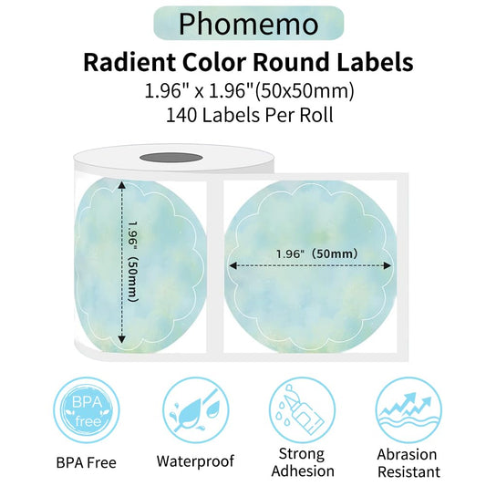 Phomemo Okr?g?e etykiety do drukarek etykiet M220/M221/M110/M120/M200, 3 rolki 50 mm x 50 mm (1,96'' x 1,96'') etykiety gradientowe na kod kreskowy/logo/etykiety prezentowe/ma?e przedsi?biorstwo,