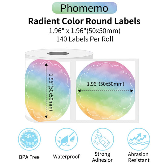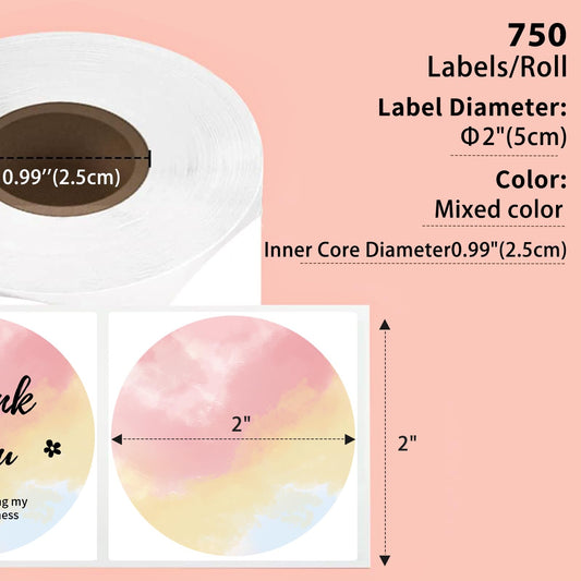Phomemo Okrągłe, różne kolory, etykiety 750 etykiet/rolka, kompatybilne z drukarkami etykiet MUNBYN, Phomemo, Polono, bez BPA, samoprzylepne etykiety termiczne do logo, kodu