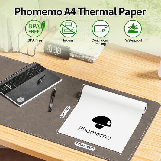 Phomemo Papier termiczny do drukarki - A4 Size papier, 210 mm x 6,5 m, kompatybilny z Phomemo M08/P831/M832/M833/M834, przenośna drukarka A4, do podróży, domu, zdjęcia, rachunku, umowy, 4 rolki