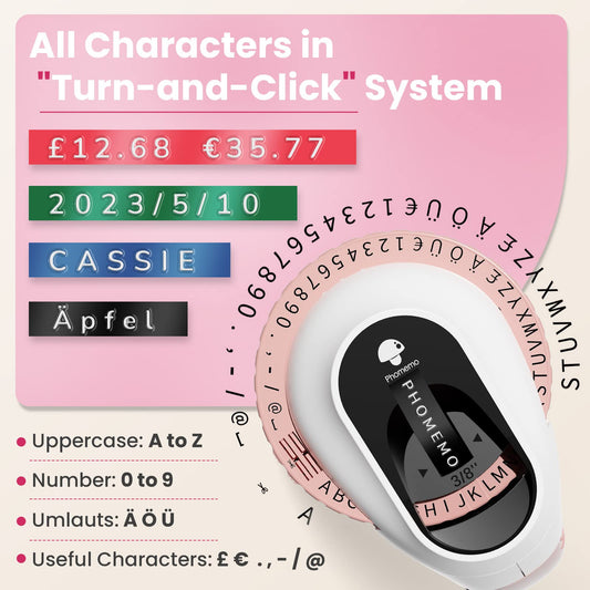 Phomemo Prägegerät | 3D Mini Etikettiergerät | Tragbarer Beschriftungsgerät | Rosa Etikettenprägegerät mit 6 Etikettenband | für Haus, Büro, Geschenk Organisation (£ € Ä Ö Ü)