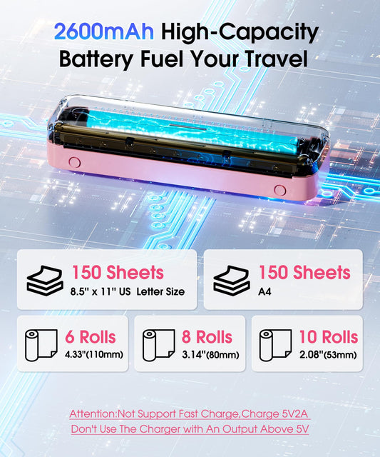Phomemo Portable Thermal Printer - Portable Printers Wireless for Travel Compatible with iOS and Android, Bluetooth Mobile Printer Support 8.5'' X 11'' Thermal Paper, with 1 Case