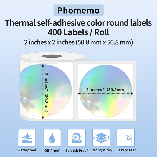 Phomemo Star Colour Laser Runde Etiketten - Selbstklebende Thermoetiketten, 2''*2'' (50x50mm), 500 Etiketten/Rolle Star Laser Runde Etiketten