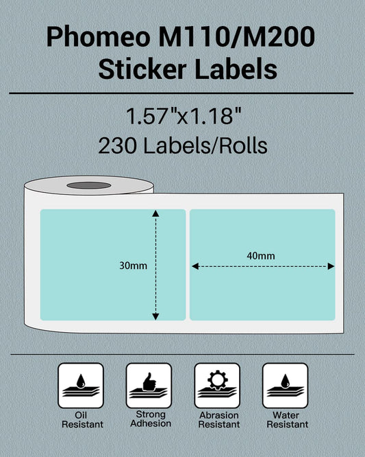 Phomemo Sticker Label M110/M221/M220/M120/M200/M110S Thermal Label- Black on Green 1.57''x1.18''(40x30mm) for Small Business, Home, Office, 230 Labels/Roll