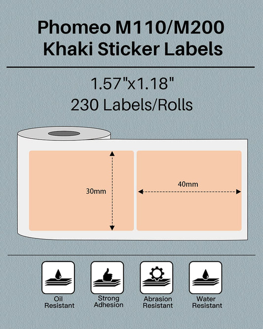 Phomemo Sticker Label M110/M221/M220/M120/M200/M110S Thermal Label- Black on Khaki 1.57''x1.18''(40x30mm) for Small Business, Home, Office, 230 Labels/Roll