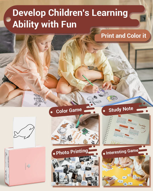 Phomemo Stampante termica M02 Mini stampante tascabile wireless Stampante per ricevute on-the-go 203 DPI per diario Regalo per bambini Rosa