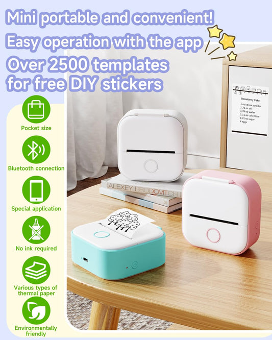 Phomemo Sticker Printer- T02 Mini Printer Sticker Maker Inkless Printer Portable Bluetooth Thermal Pocket Photo Printer for Study Notes, Stickers, Photos, DIY, for Birthday, Green