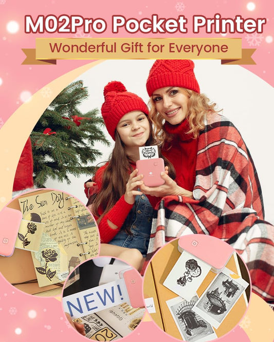 Phomemo Sticker Printer- M02 Pro 300dpi Mini Printer Pocket Phone Printer Mini Photo Printer Thermal Printer for Study Notes, Organization, Art Creation, Gift, Pink
