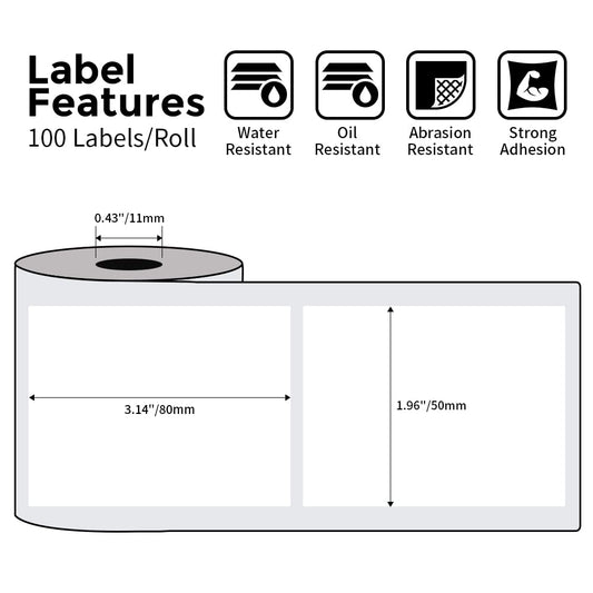 Phomemo 3 Roll 1.96'' x 3.14'' Multi-Purpose Thermal Label Paper Compatible with M220, M200, M120, M110 Label Printer, 100 Labels/Roll, for Barcode, Name, Address, Labeling, Mailing, Business Letter