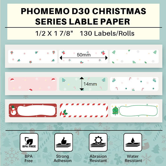 Phomemo 3 Roll D30 Adhesive New Year Decoration Pattern with Border Label Paper 1/2'' X 1 7/8'' 130 Labels/Roll, Black on White, for Gift, Halloween Christmas Decoration