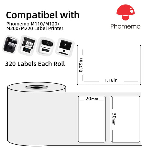 3 Rolls of Phomemo m110 Printer Labels, 1.18''x0.79'' (30x20 mm) Self-Adhesive Direct Thermal Labels, Thermal Label Paper for Phomemo M110M120 M221 M220 Label Maker, for Barcode, Name, Price etc