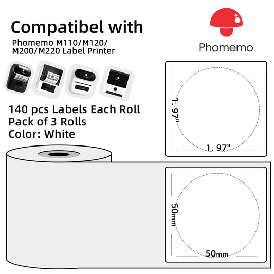 3 rollen van Phomemo Logo Sticker 2 inch ronde witte zelfklevende thermische etiketten papier voor Phomemo M110 M120 M220 Label Maker, gebruikt voor Logo afdrukken, huishoudelijke artikelen markering