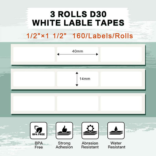 3 rollos Phomemo D30 etiqueta, 14 mm ¡Á 40 mm,Etiqueta autoadhesiva multifuncional D30 compatible con la impresora de etiquetas Phomemo D30, Usado para Hogar, oficina, escuela.160 / rollo, 3 rollos