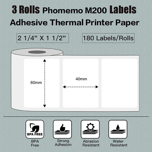 3 Rolls of Phomemo m110 Paper, 1.57''x1.18'' (40x30 mm) Self-Adhesive Direct Thermal Labels, Thermal Label Paper for Phomemo M110 M120 M220 M221 Label Maker, for Barcode, Address, Price etc