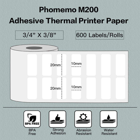 3 Rolls Phomemo M110 Label,self-Adhesive Thermal Label, 0.78''¡Á0.39''£¨20¡Á10mm£© 600 Labels/roll, 3 Rolls, Compatible with Phommeo M110 M200 M120 M220 M221 Label Maker, 3 Rolls Multifunctional Label