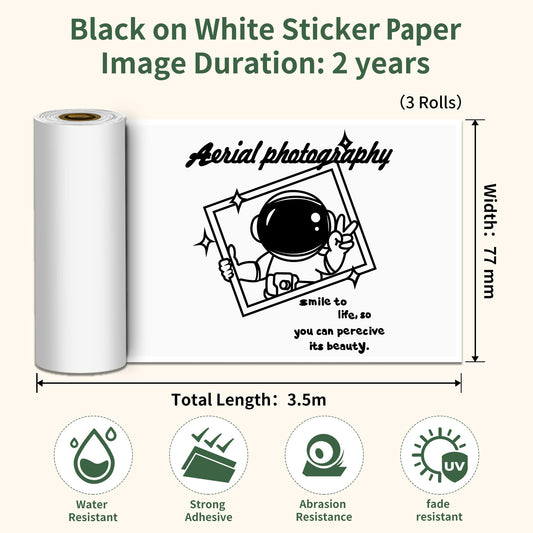 3 Rolls Phomemo 3.03''(77mm) Width Adhesive Thermal Paper Printer Paper, Compatible with Phomemo M832/M03/M03AS/M04S/M04AS Sticky Note Printer, Black on White, Storage for 2 Years