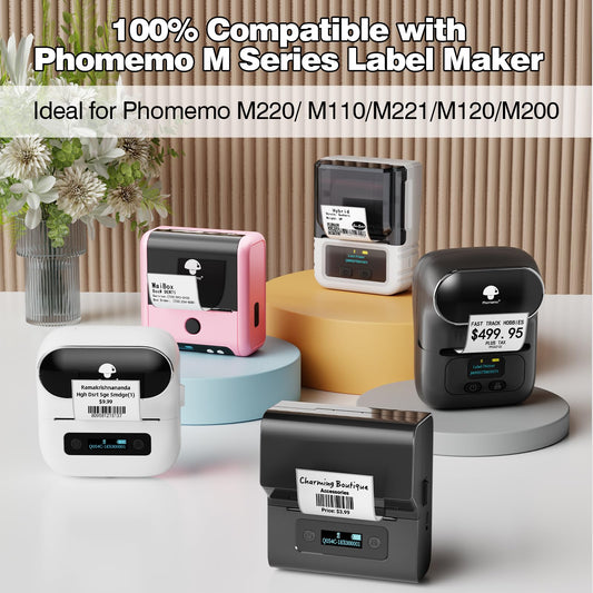 3 Rolls Phomemo Thermal Labels- 1.57''x 1.57'' Sticker Label Compatible for Phomemo M110/M221/M220/M120/M200 Label Printer, for Barcode, Address, Mailing, Black on White