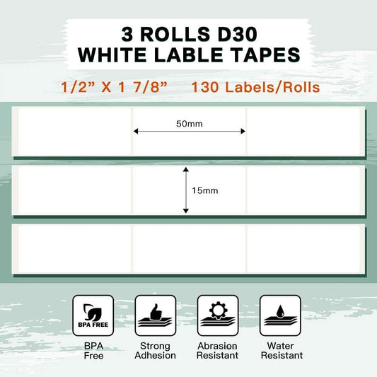 Phomemo 3 rouleaux d'¨¦tiquettes thermo adh¨¦sives,15mm * 50 mm,compatible avec Phomemo D30 l'imprimante d'¨¦tiquettes,Pour la maison, l'¨¦cole,130 pi¨¨ces/rouleau,3 rouleaux(¨¦tiquette blanche)