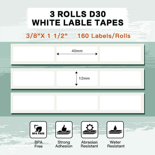 Phomemo 3 rouleaux d'¨¦tiquettes thermo adh¨¦sives,12 mm * 40 mm,compatible avec Phomemo D30 l'imprimante d'¨¦tiquettes,Pour la maison, l'¨¦cole,160 pi¨¨ces/rouleau,3 rouleaux(¨¦tiquette blanche)