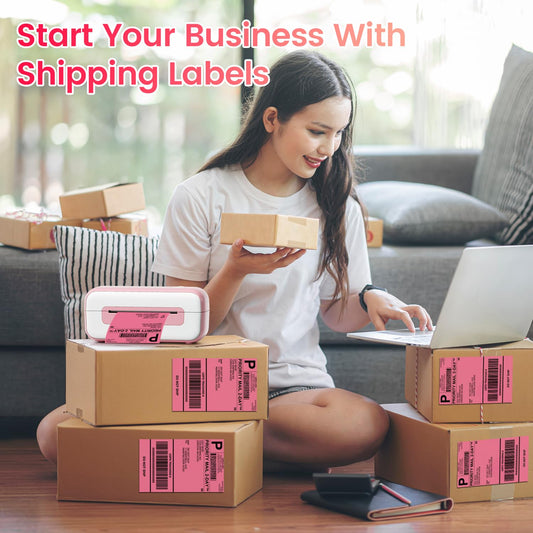 Phomemo 4''x6'' Direct Thermal Shipping Label, Pack of 100 4x6 Thermal Labels Fanfold - for Shipping Labels,Mailing,Address, Product Logo, Barcode Labels,Strong Adhesive (Rose)