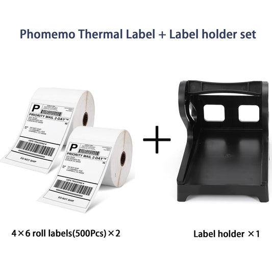 Phomemo 4x6 etiqueta térmica directa y portaetiquetas, etiqueta de envío etiqueta de embalaje compatible con Rollo MUNBYN y todas las impresoras de etiquetas 4x6 (1000 piezas etiqueta+portaetiquetas)