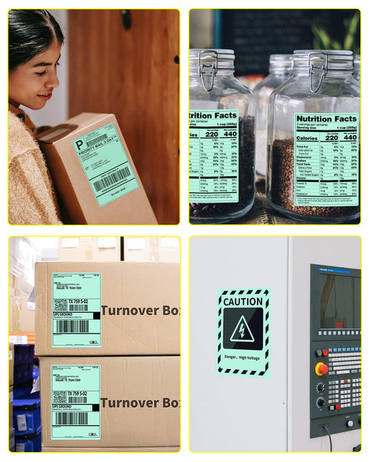 Phomemo 4x6 Thermal Paper Printer Label Thermal Direct Shipping Label Package Labels Compatible with Rollo Phomemo and Other 4 * 6 Label Printer (Pack of 500 4''x 6'' Fan-Fold Labels), Green