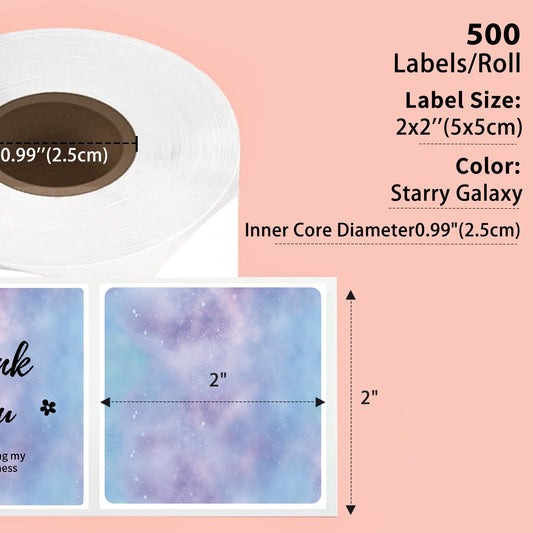 Phomemo 50 x 50 mm etichette quadrate Galaxie Star pattern 500 pcs/Roll Phomemo 2'' 500 fogli/rotolo compatibile con MUNBYN, Phomemo, Polono stampante per etichette di spedizione, senza BPA