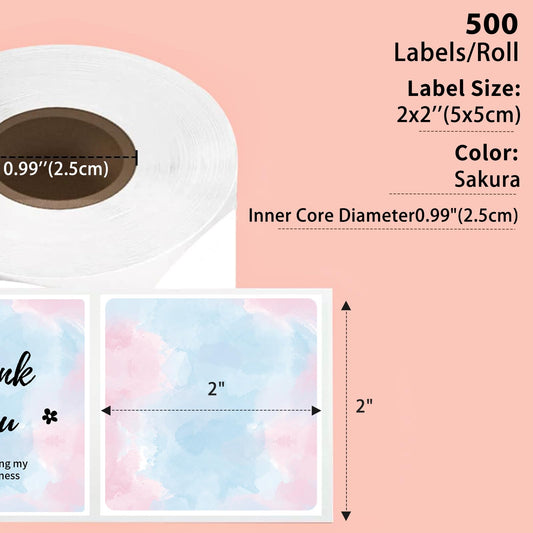 Phomemo 50 etichette quadrate da 50 mm, modello Sakura, 500 fogli/rotolo, compatibile con MUNBYN, Phomemo, Polono, stampante per etichette per spedizione, senza BPA