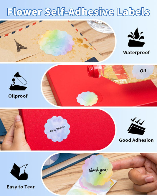 Phomemo 50x50mm Etiquettes Rondes Thermique,Autocollants Fleurs Arc-en-ciel,pour Imprimantes 241BT/D520BT/246S/249BT/344WF,Compatibles Avec Nelko,Munbyn,Zebra,Nelko,Itari et plus(500Labels/Roll)