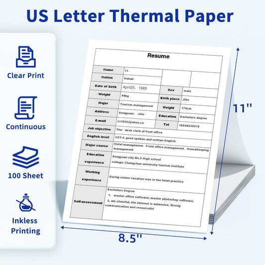 Phomemo 8.5 x 11 Inch Thermal Printer Paper, 100 Sheets US Letter Continuous Folding Thermal Paper, Compatible with M832 M08F M835 M834 M833 and Other Letter Size Portable Thermal Printers