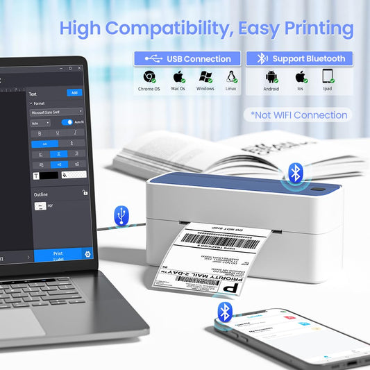 Phomemo Bluetooth Thermal Label Printer for Shipping Label - Wireless Shipping Label Printer Compatible with iOS&Android&PAD&PC, Widely Used for Amazon, Ebay, Shopify, TikTok, Etsy, USPS, FedEx, DHL