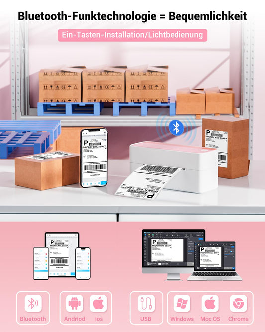 Phomemo Bluetooth Label Printer, DHL Thermal Printer 4XL Label Printer EttagendrucWashable for Mac/PC, Shipping Label Printer for Barcode, Amazon, Ebay, Etsy & Shopify, DHL Ups - Pink