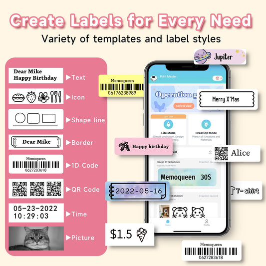 Phomemo Bluetooth Mini Label Printer, D30 Label Maker Machine with Tape for Storage, Barcode, Address Labeler, Wireless Thermal Label Makers with Multiple Templates for Organizing Office Home, Pink