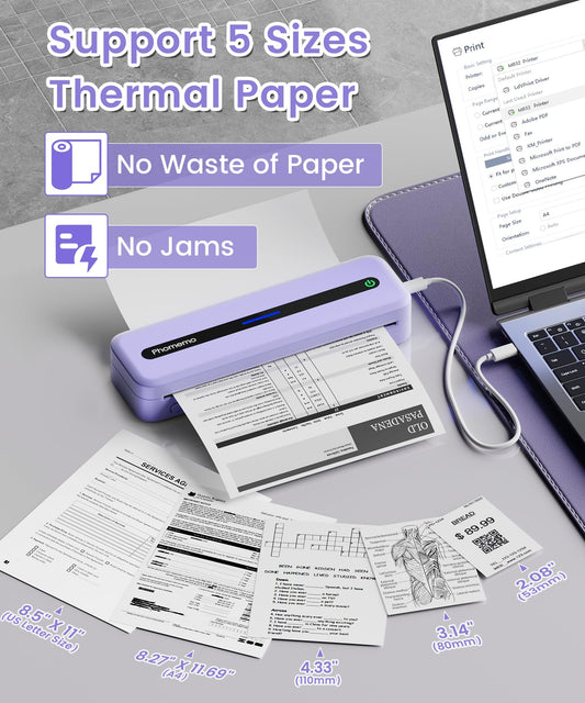Phomemo Bluetooth Portable Printer, 8.5'' x 11'' Portable Printers Wireless for Travel, M832 Thermal Printer Compatible with Phone, Laptop, Inkless Mobile Printer for Home, Office, School,with 1 Case