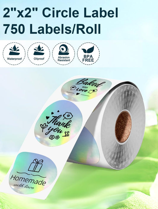 Phomemo Circle Labels- 2'' Thermal Round Laser Color Label for Barcode Label, DIY Logo Design, Small Business, Compatible with Most of Shipping Label Printers, 400pcs/Roll
