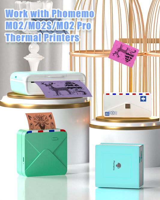 Phomemo Colorful Thermal Sticker Paper M02/M02 Pro/M02S/M03 Mini Printer, Black Character on Mint Green/Purple/Orange, 50mm x 3.5m, Diameter 30mm, 3 Rolls