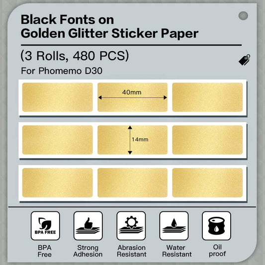 Phomemo D30 - Etiquetas t¨¦rmicas autoadhesivas doradas brillantes, 14 x 40 mm, 3 rollos