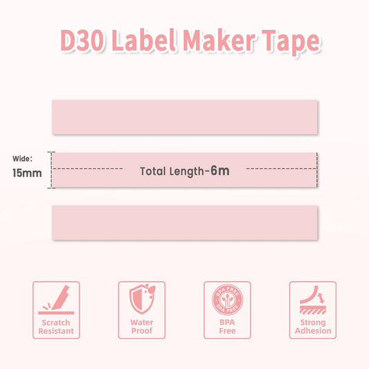 Phomemo D30 Continuous Adhesive Thermal Label Sticker Label 15mmx6m, 3roll, Pink, Waterproof, Oilproof, Used for Kitchen Marking, File Classification, Gift label or DIY label