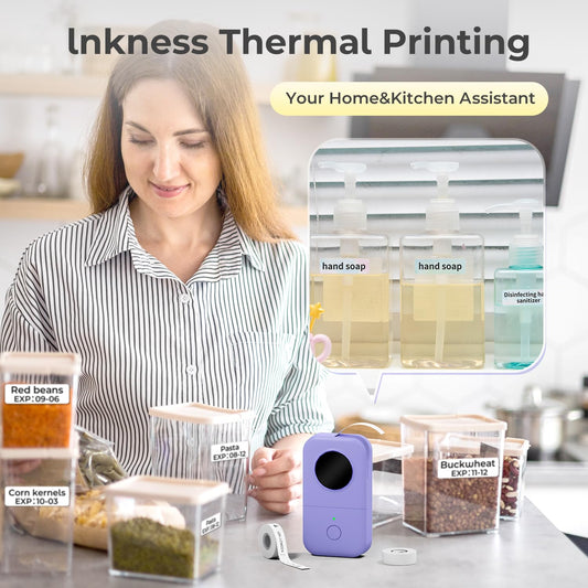 Phomemo D30 Impresora de Etiquetas Bluetooth térmica Máquina de Etiquetas portátil,Fácil de Usar en casa,Escuela,Oficina,Tienda,Caja Regalo con 5 Rollos de Etiquetas térmicas Autoadhesivas,Violeta