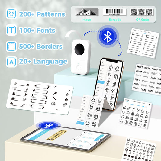 Phomemo D30 Impresora de Etiquetas Bluetooth t¨¦rmica M¨¢quina de Etiquetas port¨¢til,F¨¢cil de Usar en casa,Escuela,Oficina,Tienda,Caja Regalo con 5 Rollos de Etiquetas t¨¦rmicas Autoadhesivas,Blanco