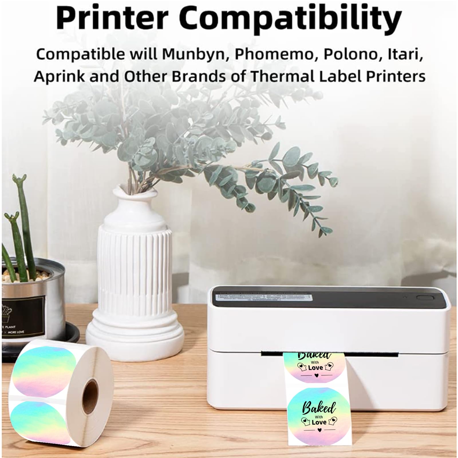 Phomemo 2'' Round Laser Dazzle Labels, 400 Labels/Roll Compatible with MUNBYN, Phomemo, Polono Label Printers, BPA Free Shipping Labels, Adhesive Thermal Labels for Logo, Code