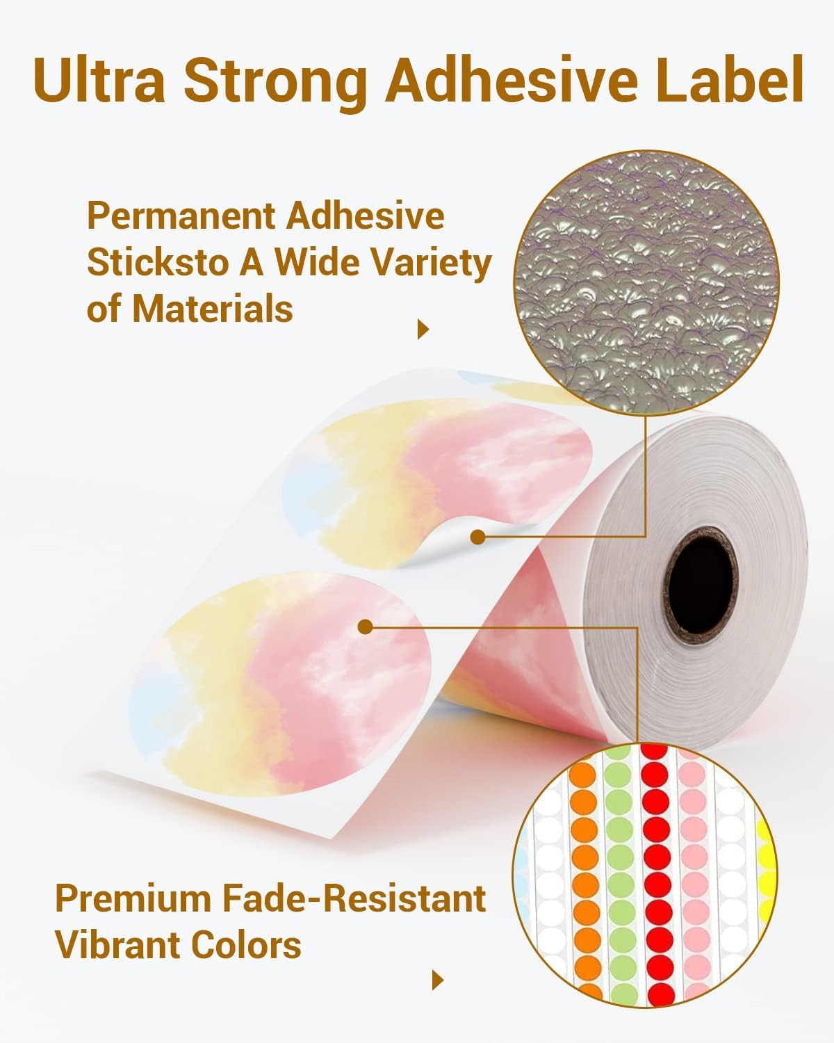 - [Sp¨¦cifications]Chaque ¨¦tiquette thermique a un diam¨¨tre de 2 pouces/76MM, 750 ¨¦tiquettes thermiques / rouleau, Couleur : D¨¦grad¨¦ rose-jaune, l'ouverture du rouleau d'autocollants ronds est de 0,99 ''/25MM.