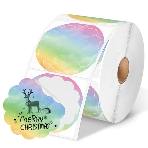 Phomemo 2'' Wavy Circle Thermo-Etiketten, 5,1cm Selbstklebende Direktaufkleber, für DIY Logo Design, QR Code Aufkleber, Namens Preisschild, Dankeskarte, Adresse, 500 Etiketten Mehrfarbiger Verlauf
