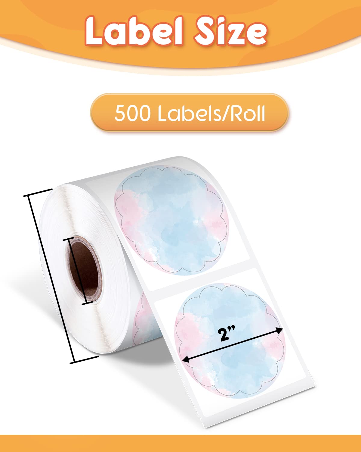 Phomemo 2'' Wellige thermische Etiketten, selbstklebende Blumen Aufkleber Aufkleber Aufkleber für Dankeskarte, Logo, Name, Preis, Adresse, QR Code, 500 Etiketten, blau-rosa Farbverlauf
