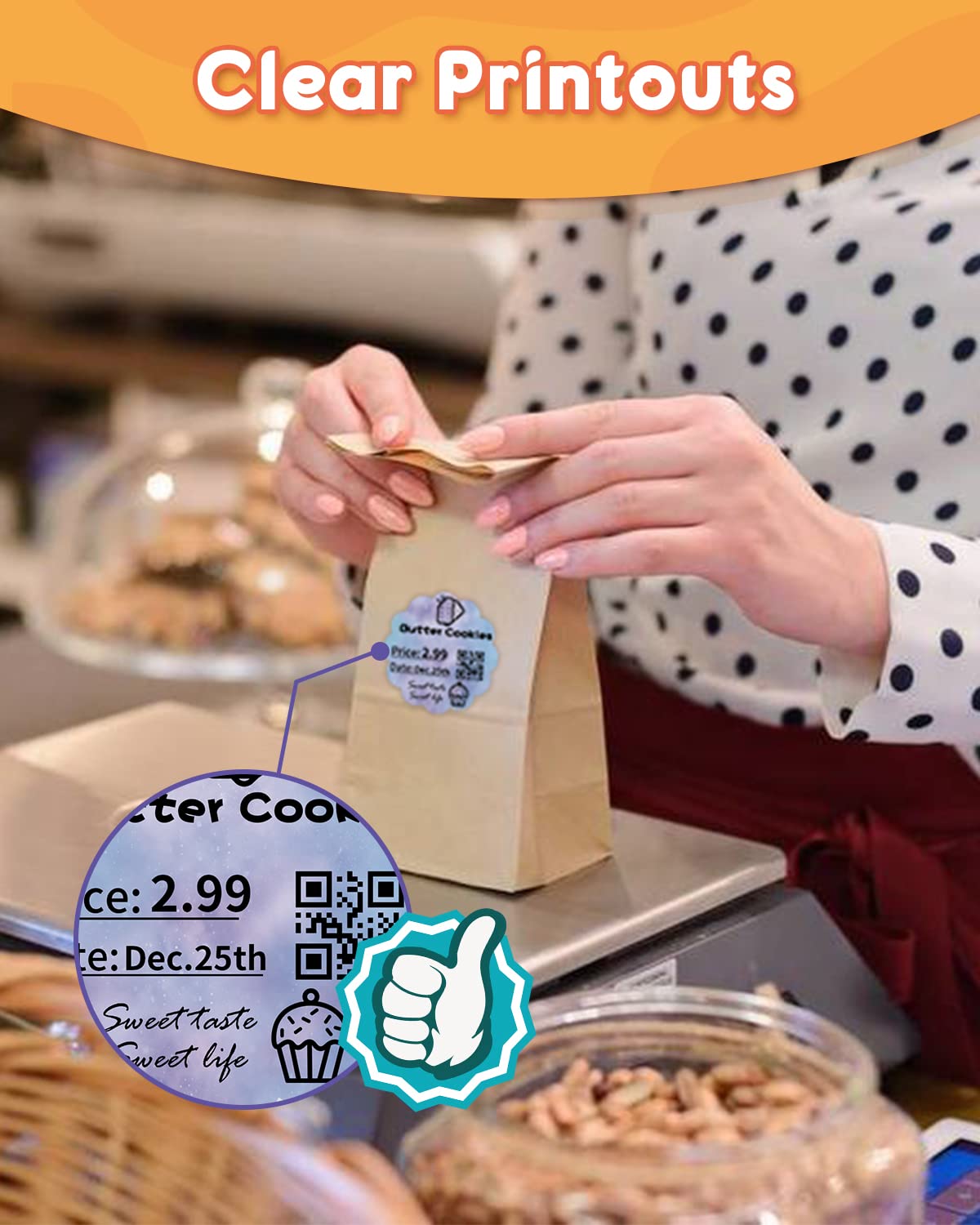 - Etiketten: Wasserdicht, öldicht und kratzfest. Machen Sie Klassifizierung, Lagerung, Größe und Namensschilder in Leben und Arbeit, drucken Sie Produktpreis, QR-Code, Barcode und entwerfen Sie Ihre eigenen Firmenlogos oder Dankeskarten