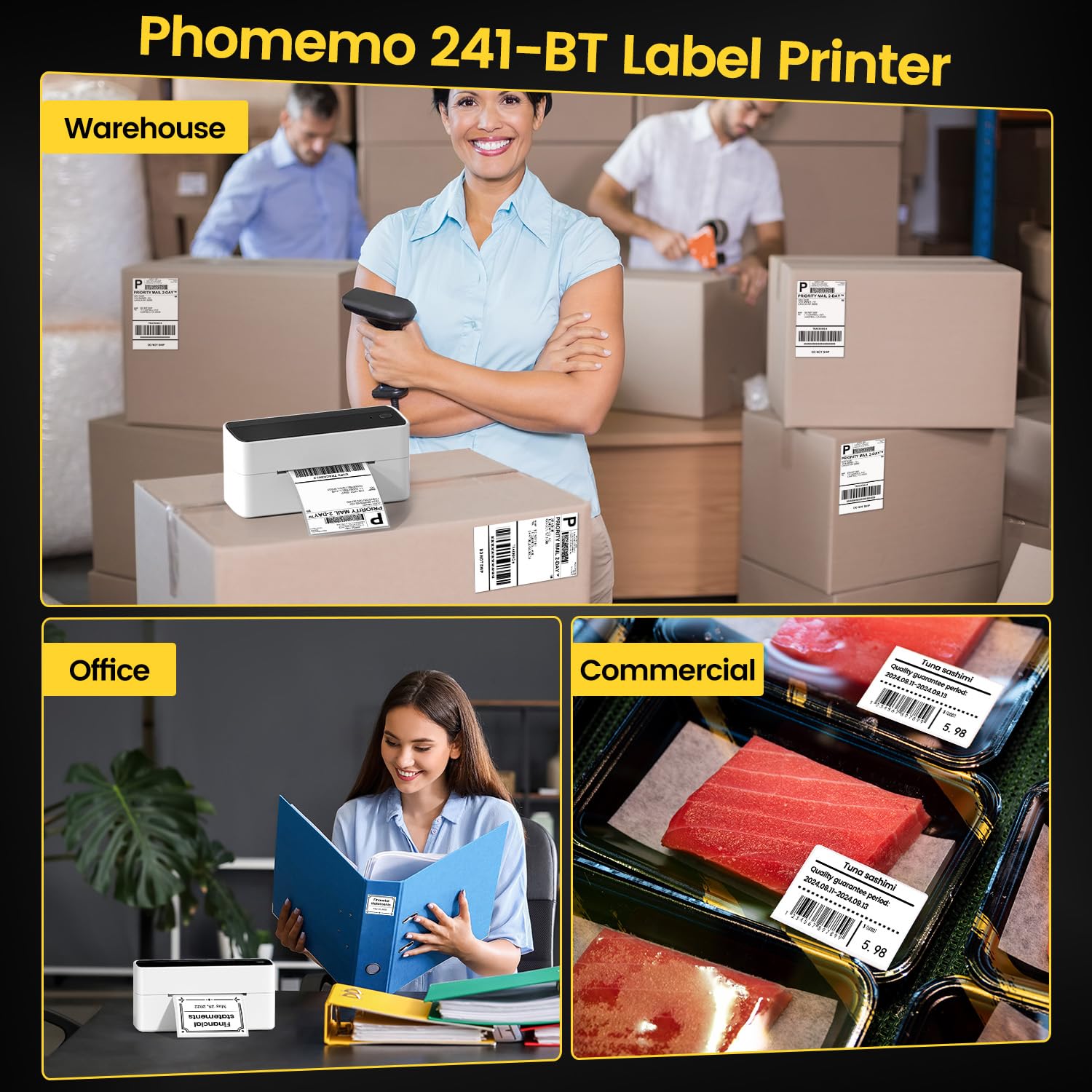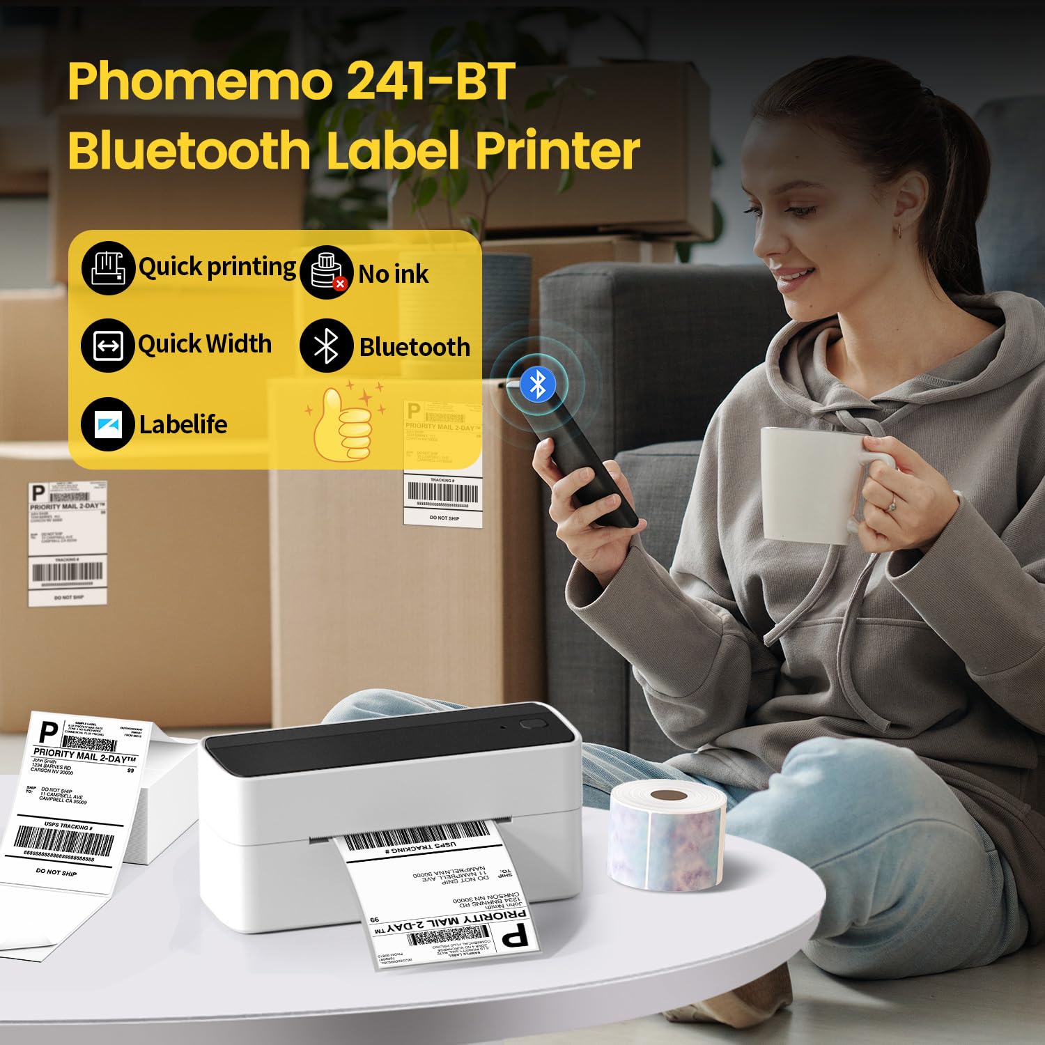 Phomemo 241-BT labelprinter, Bluetooth thermische printer, DHL labelprinter, 4 x 6 labelprinter, thermische labelprinter, ettiketeerapparaat voor verzendpakketten, compatibel met Ebay, Amazon, Etsy,