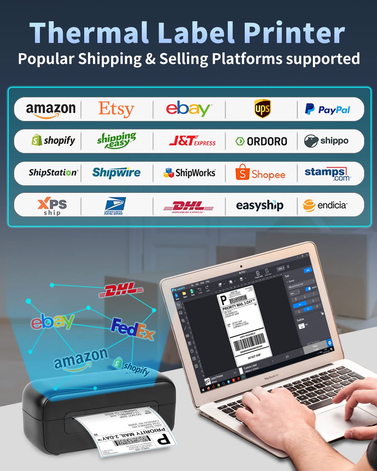 - ??Wide Compatibility - Phomemo label printer supports labels width from 1 inch to 4.6 inches.It's compatible with major transportation and sales platforms such as USPS, Shopify, UPS, Etsy, eBay, Amazon, Poshmark, ShipStation, Shippo, Ordoro, etc.It can print up to 72 labels per minute(152mm/s).Print efficiently and conveniently.